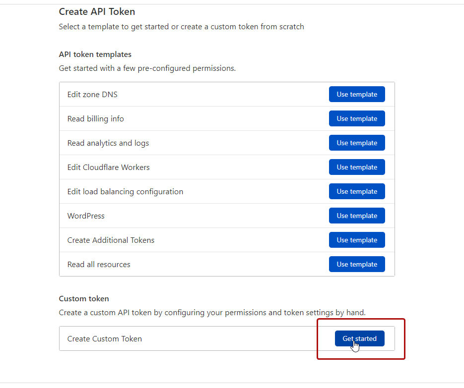 3. Create a custom token by clicking "Get Started".