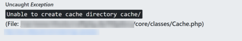 The cache directory cannot be created