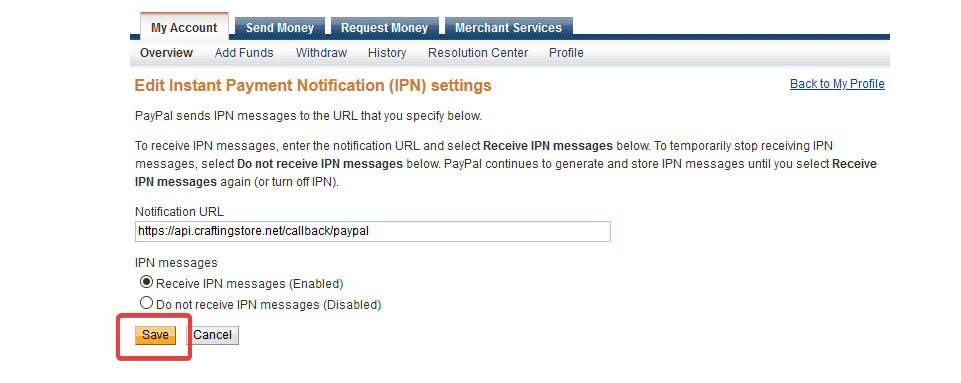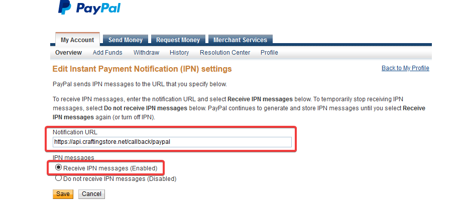 Setting up IPN (Instant payment notifications) at your PayPal account#