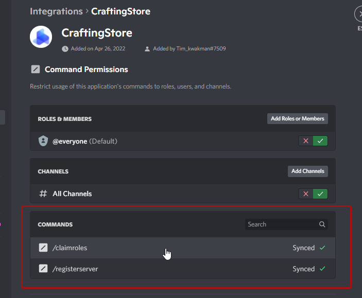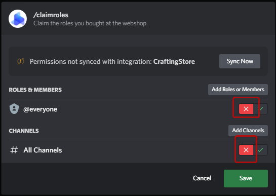 8. Disable the commands on the default CraftingStore bot (optional)#