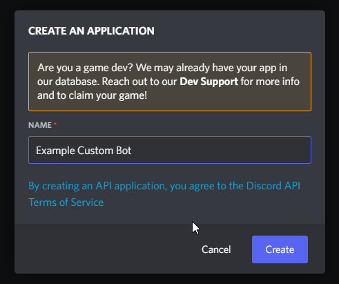 Go to the Discord developers portal (https://discord.com/developers/applications) and create a new application.