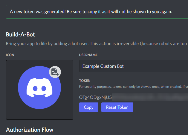 Our bot will still be responsible for updating the roles, confirming ownership, giving roles, and revoking roles. As such it will need permission to take action. The custom bot does not need any special permissions and will only be for the players to interact with.